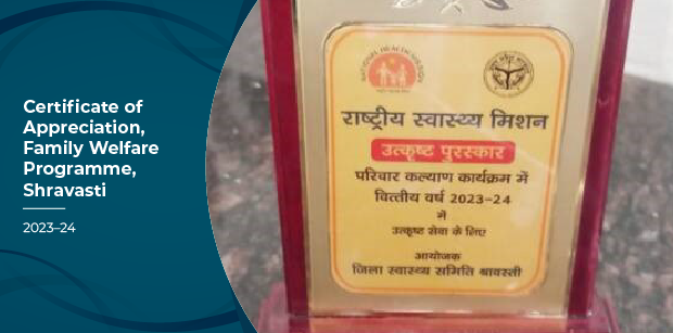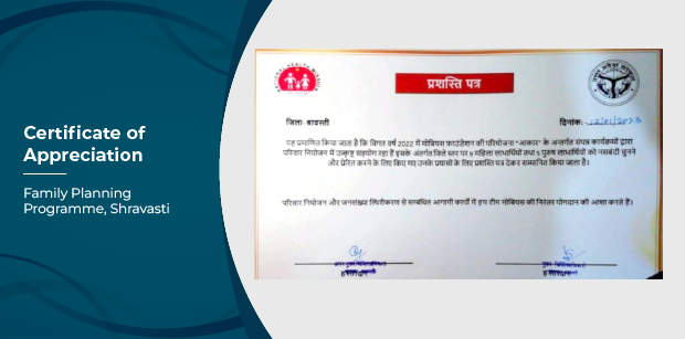 Certificate of Appreciation, Family Welfare Programme, Shravasti (2023–24)