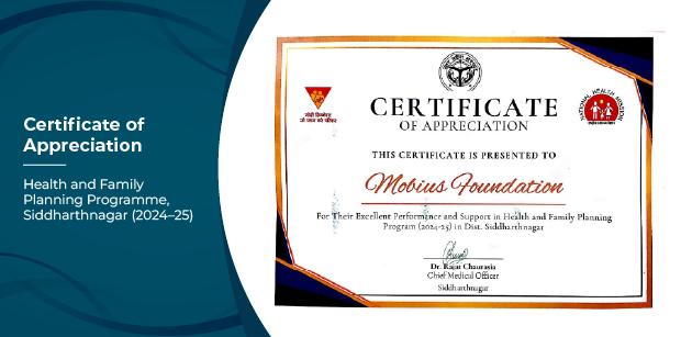 Certificate of Appreciation, Health and Family Planning Programme, Siddharthnagar (2024–25)