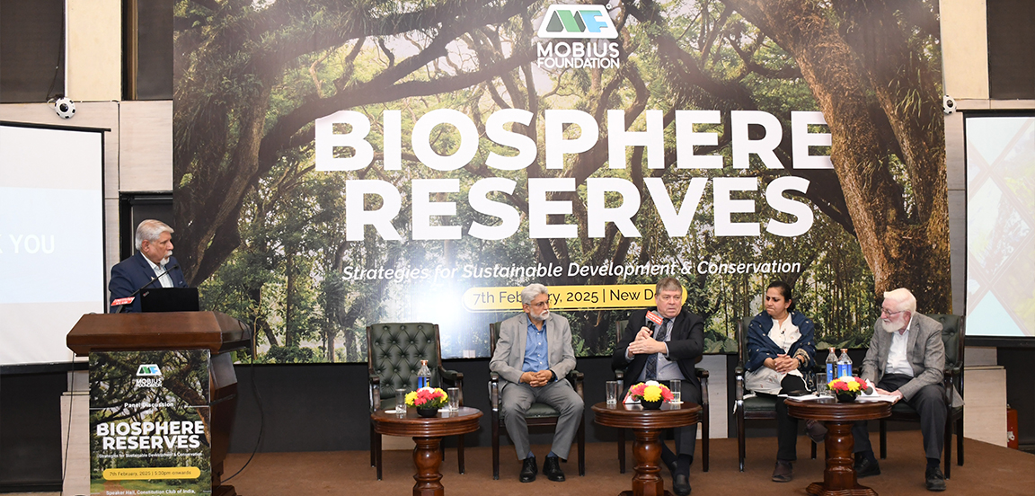 Mobius Foundation hosted a panel discussion on ‘Biosphere Reserves: Strategies for Sustainable Development and Conservation’ at the Constitution Club of India, featuring experts from UNESCO, WWF, and academic institutions. Panellists highlighted the importance of biosphere reserves, as well as several challenges, including inadequate research and monitoring infrastructure, limited community engagement, conflicts between conservation and local needs, threats from unregulated development, invasive species, and funding constraints.